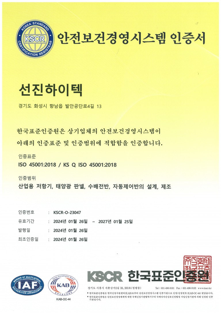 인증서 ISO 45001 kor 페이지 정보 작성자 관리자 댓글 0건 조회 116회 작성일 25-08-18 14:28 목록 첨부파일 선진하이텍 ISO 45001 kor.pdf (2.1M) 이전글중소기업확인서 25.08.18 다음글ISO-14001-Kor(2025) 25.08.18